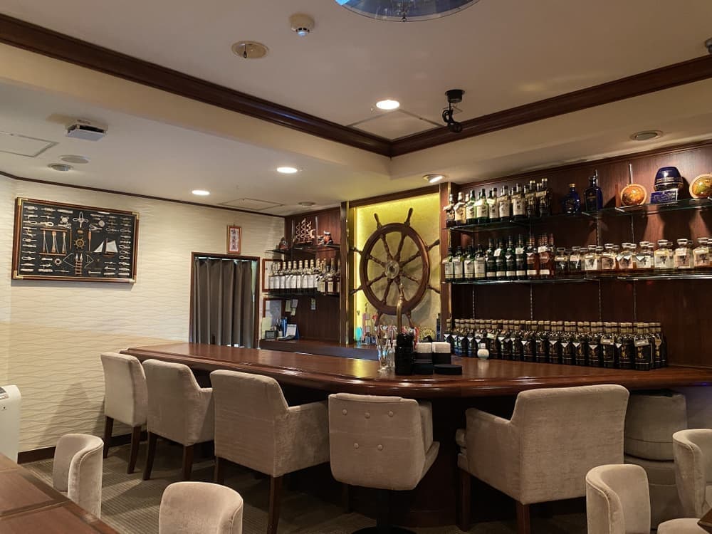 豪華客船のラウンジをイメージするような店内。落ち着きある空間で、日常からチョット離れてクルーズの旅に出てみませんか。旅の途中には数々のイベントもあり、時間を忘れてクルーたちと共に楽しいひと時をお過ごしくださいませ。